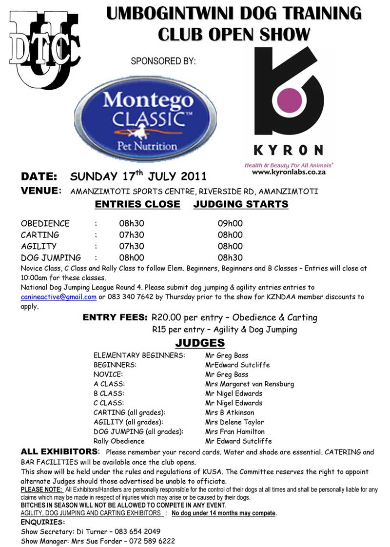 Please download the PDF version should you wish to print the Show Schedule above.