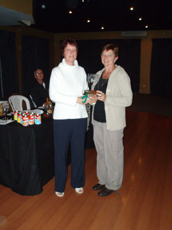 Cheryl (on right) receives the Chris Ridsdale Memorial - Highest % at UDTC Open Show from Karen (on Left) for her dog "Levi" at the 2009 Annual UDTC AGM.