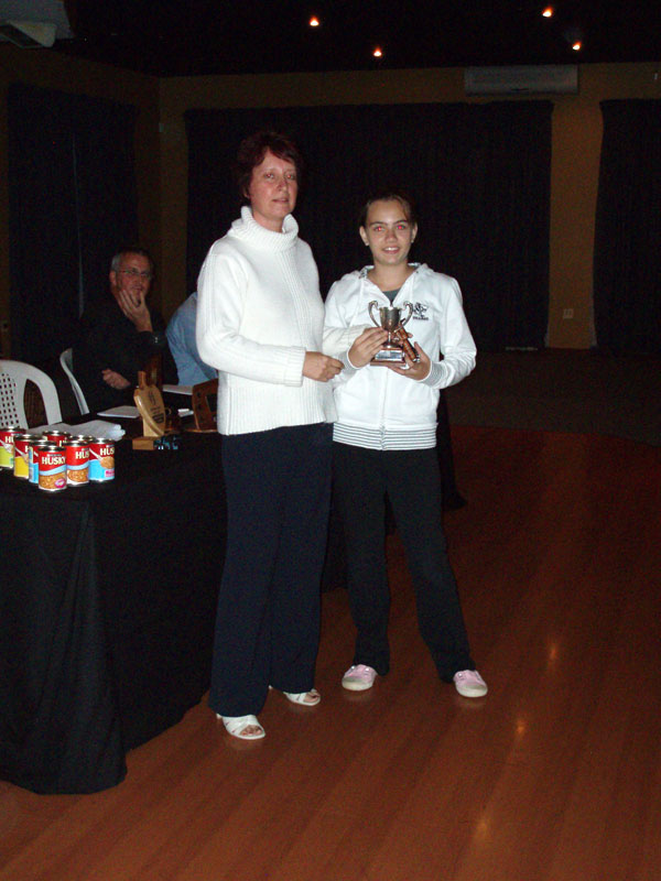 Michaela (on right) receives the UDTC Trophy - Junior Handler from Karen (on left) for her dog "Jessie" at the 2009 Annual UDTC AGM.