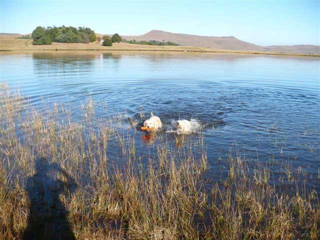 Pietermaritzburg K.C Field Trial hosted by The Natal Gundog Club. "Amber" at play with her new friend after a hard days work in the field.